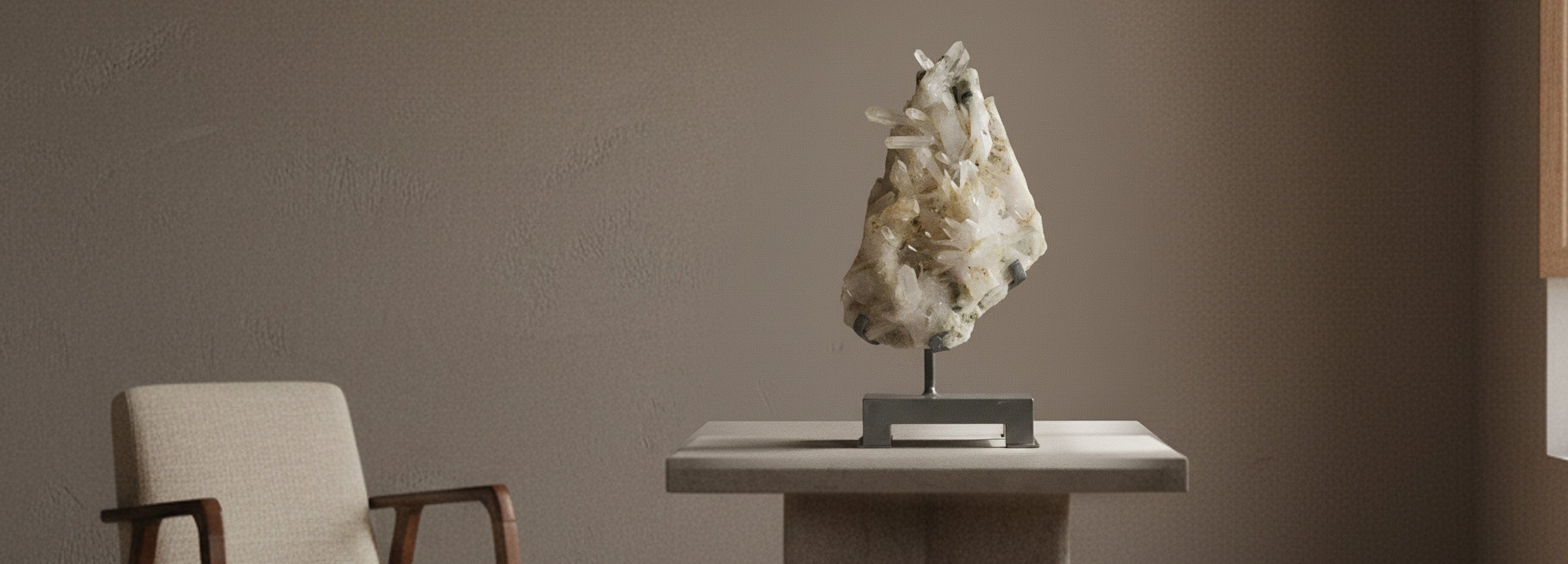 We travel the world to find stones of uncommon beauty, selecting each piece by hand. Guided by rarity, form, and presence, we choose crystals that transcend material and become timeless works of design.