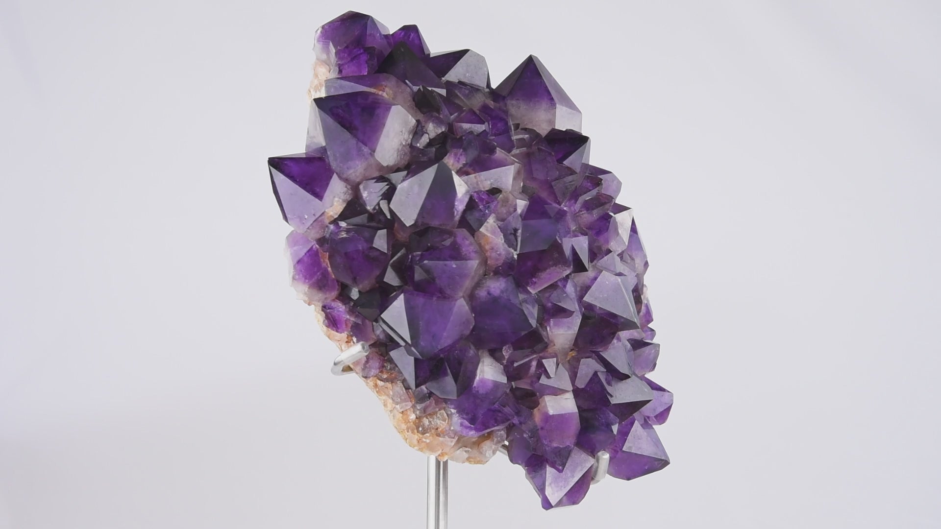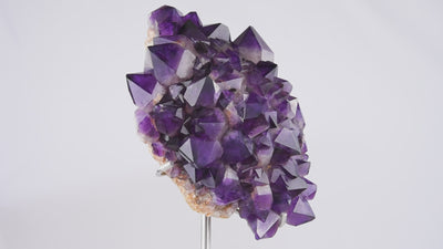 Amethyst cluster with striking natural geometry and rich violet tones. A statement object that elevates interiors, pairing effortlessly with marble, brass, or wood accents.