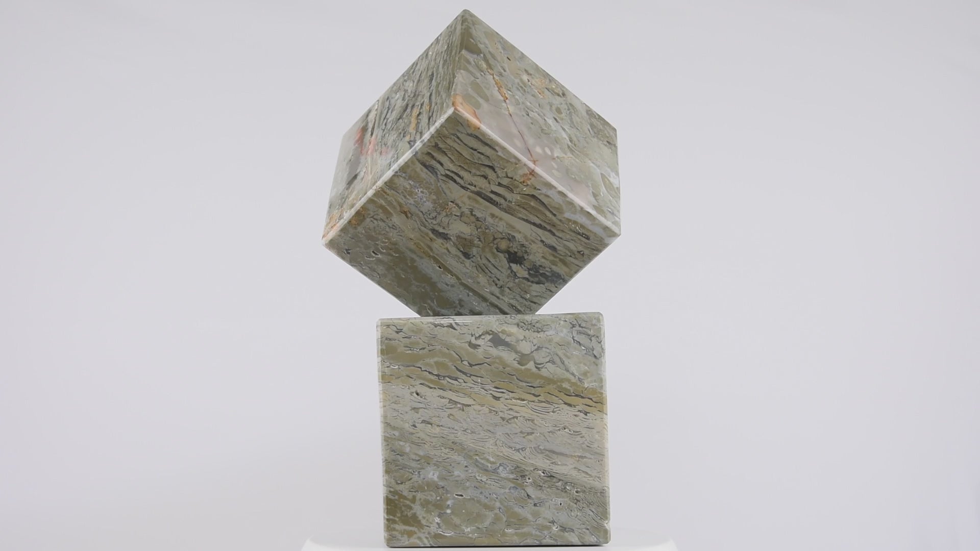 Olive marble cube set with clean geometric lines and subtle earthy veining. A sculptural accent that adds architectural elegance, pairing effortlessly with stone, brass, or wood interiors.