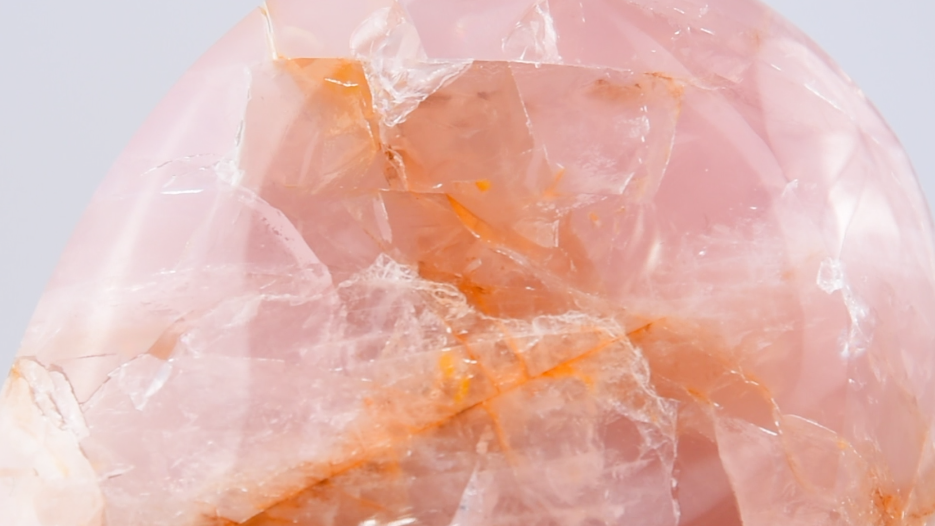 Hand-carved Brazilian rose quartz sculpture with warm golden inclusions and luminous translucence. A refined collectible piece that balances elegance and natural artistry.